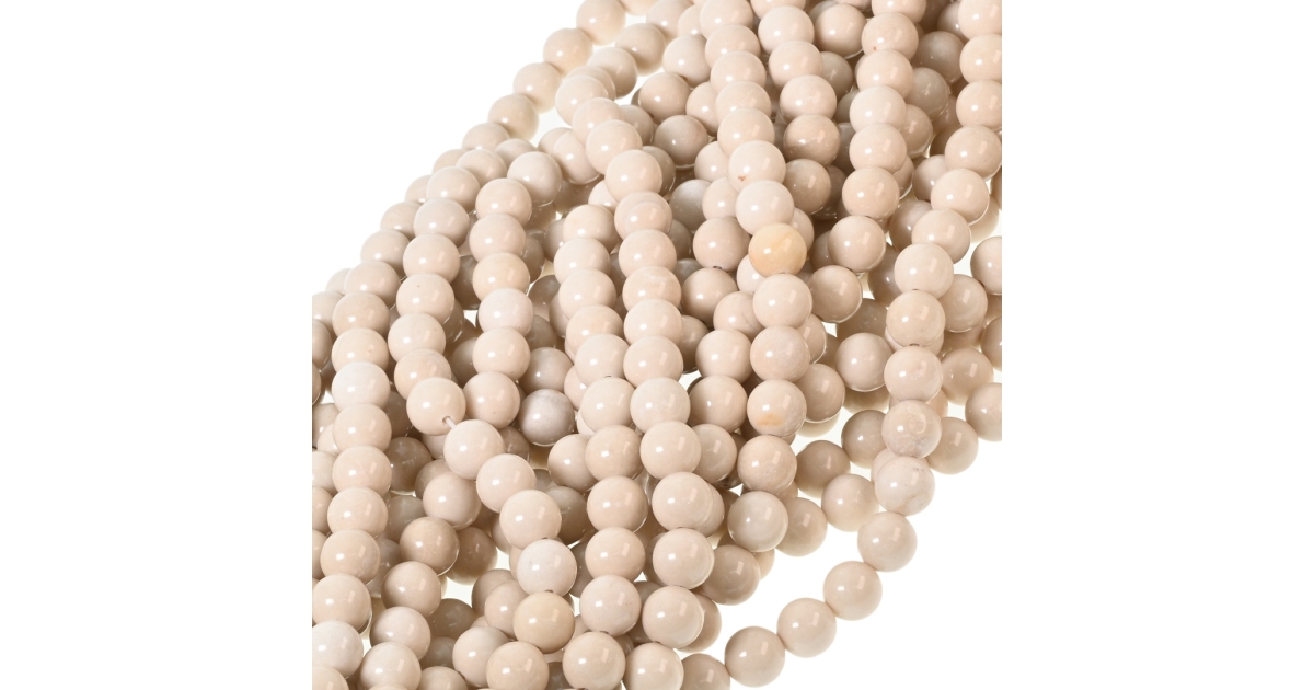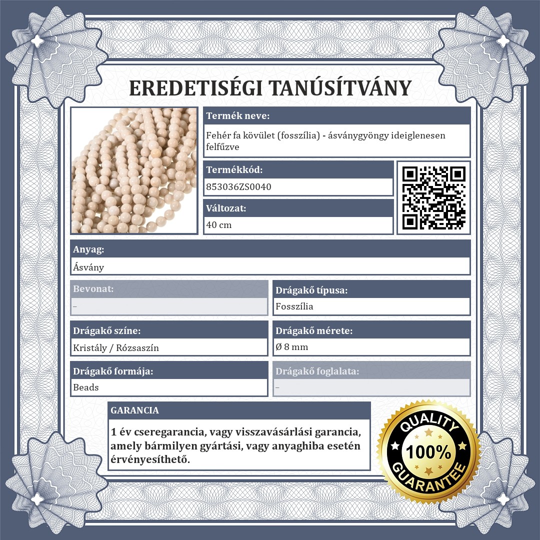 Eredeti fehér fa kövület, fosszília ásványgyöngy.