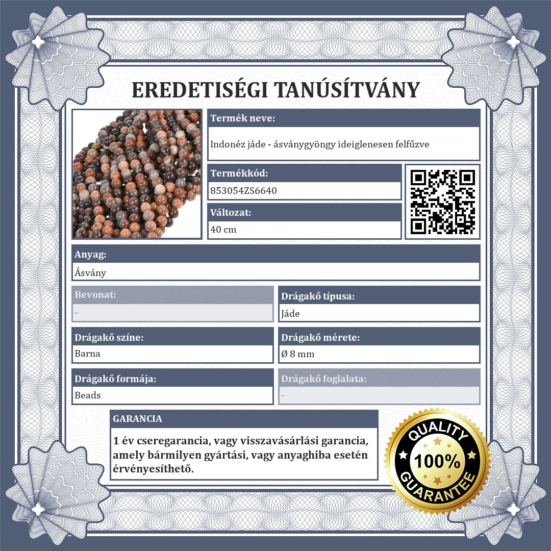 A drágakövek eredetiségét a hivatalos minőségi tanúsítvány bizonyítja.