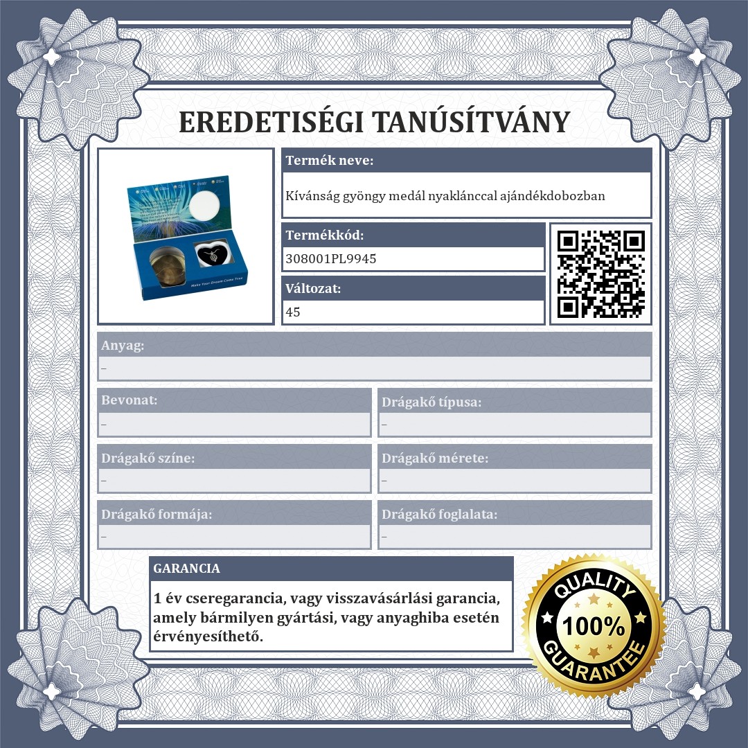 Kívánság gyöngy medál nyaklánccal ajándékdobozban