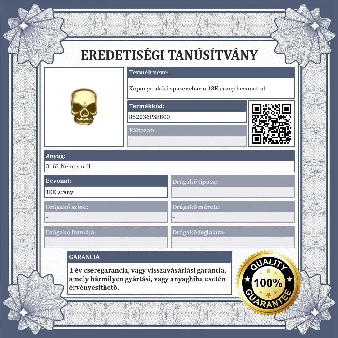 Koponya alakú spacer charm. 316L orvosi nemesacélból készült kiegészítő, 18K arany bevonattal ellátva. A spacerek biztosítják,hogy a charmok és a gyöngyök ne csússzanak el a karkötődön.