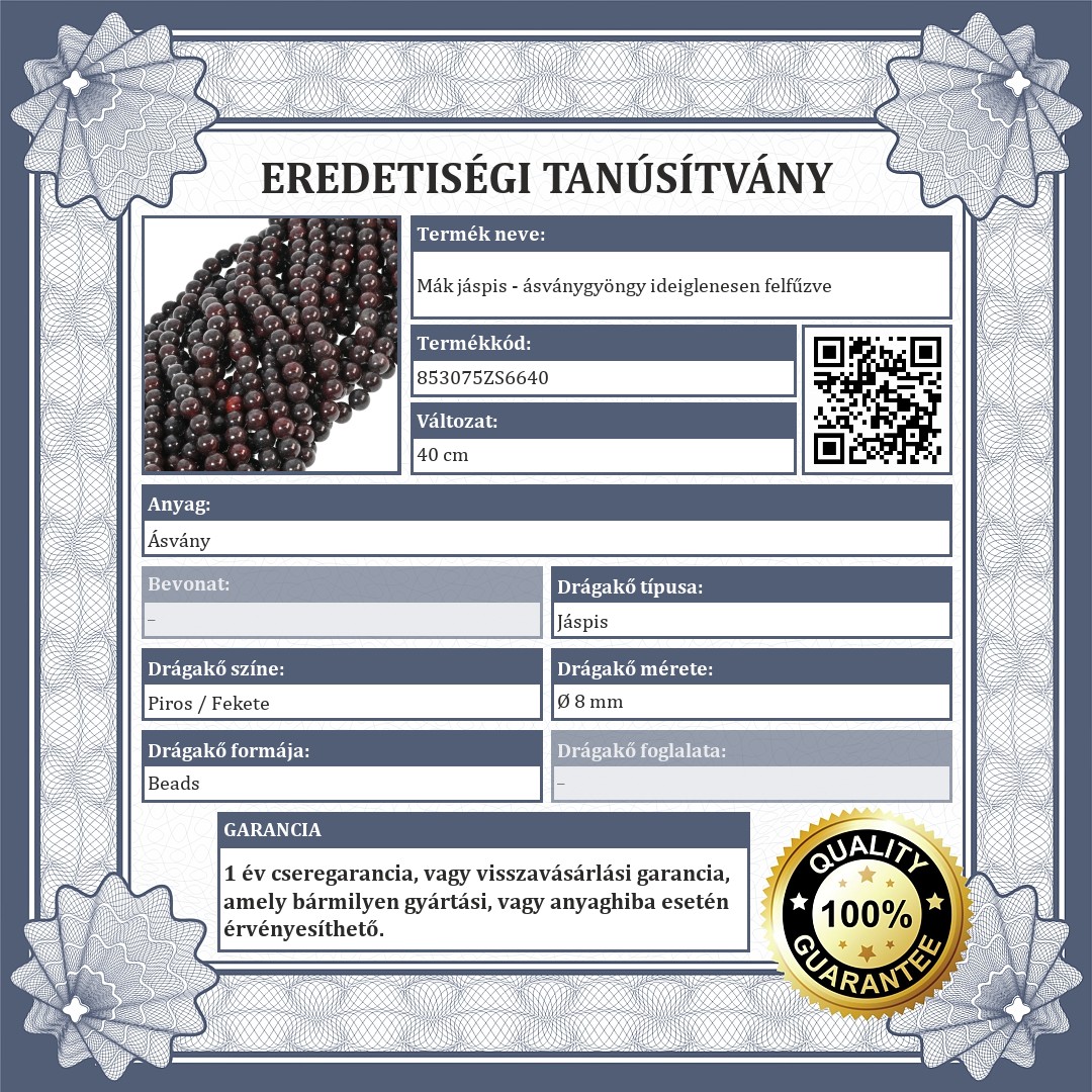 A drágakövek eredetiségét a hivatalos minőségi tanúsítvány bizonyítja.