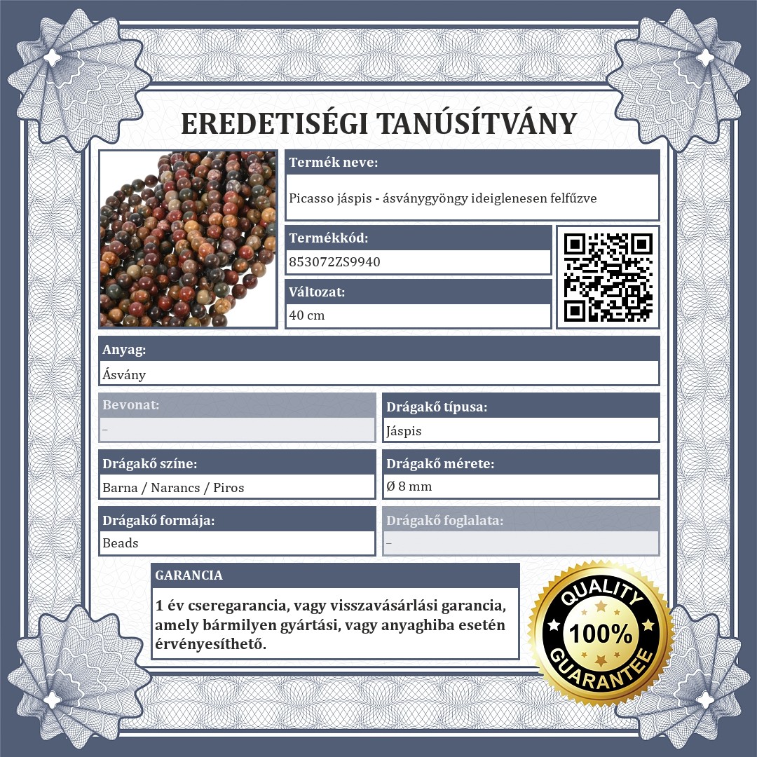 Eredeti Picasso jáspis ásványgyöngy.