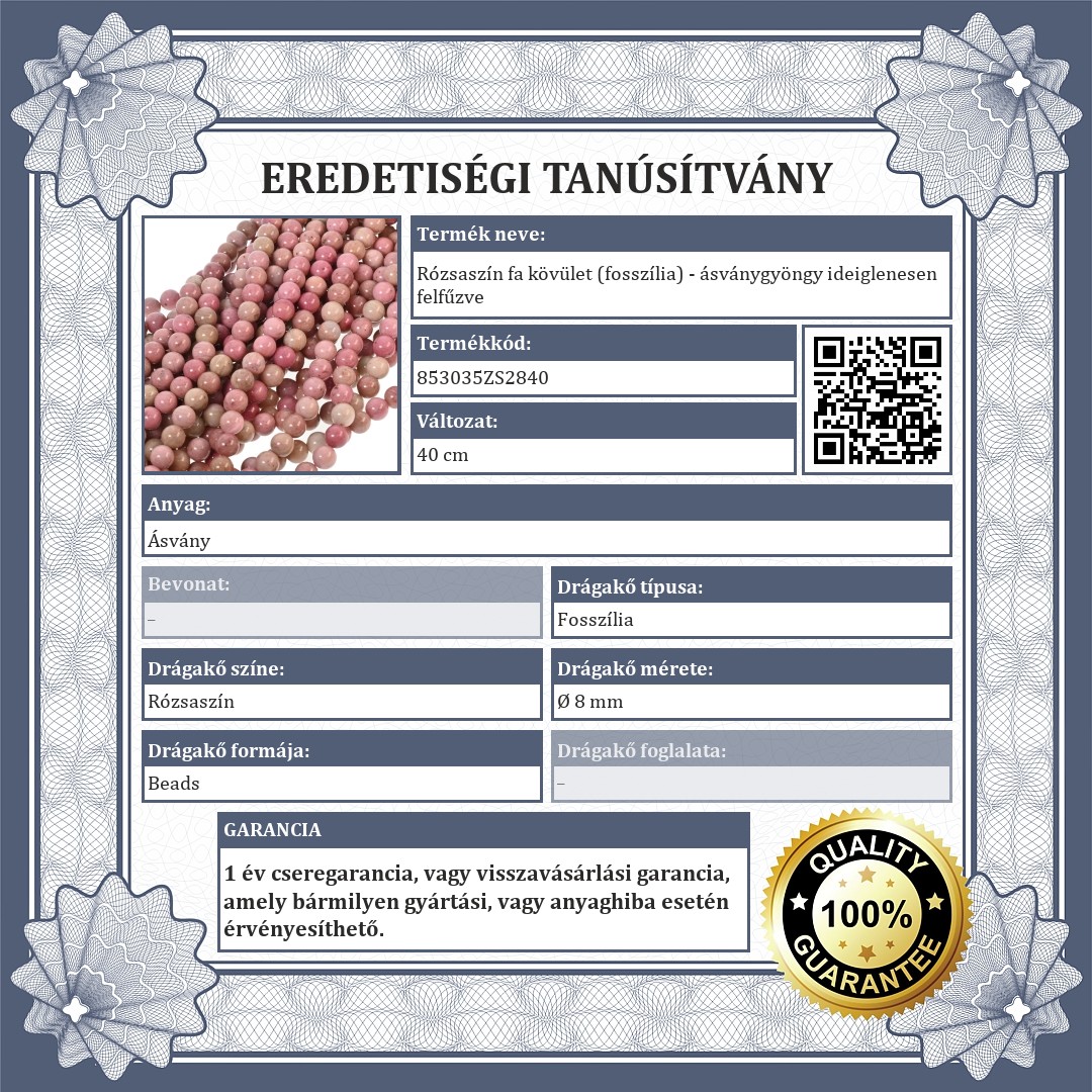 | Drágakő színe: | Retro rózsaszín / Halvány rózsaszín / Rózsaszín |