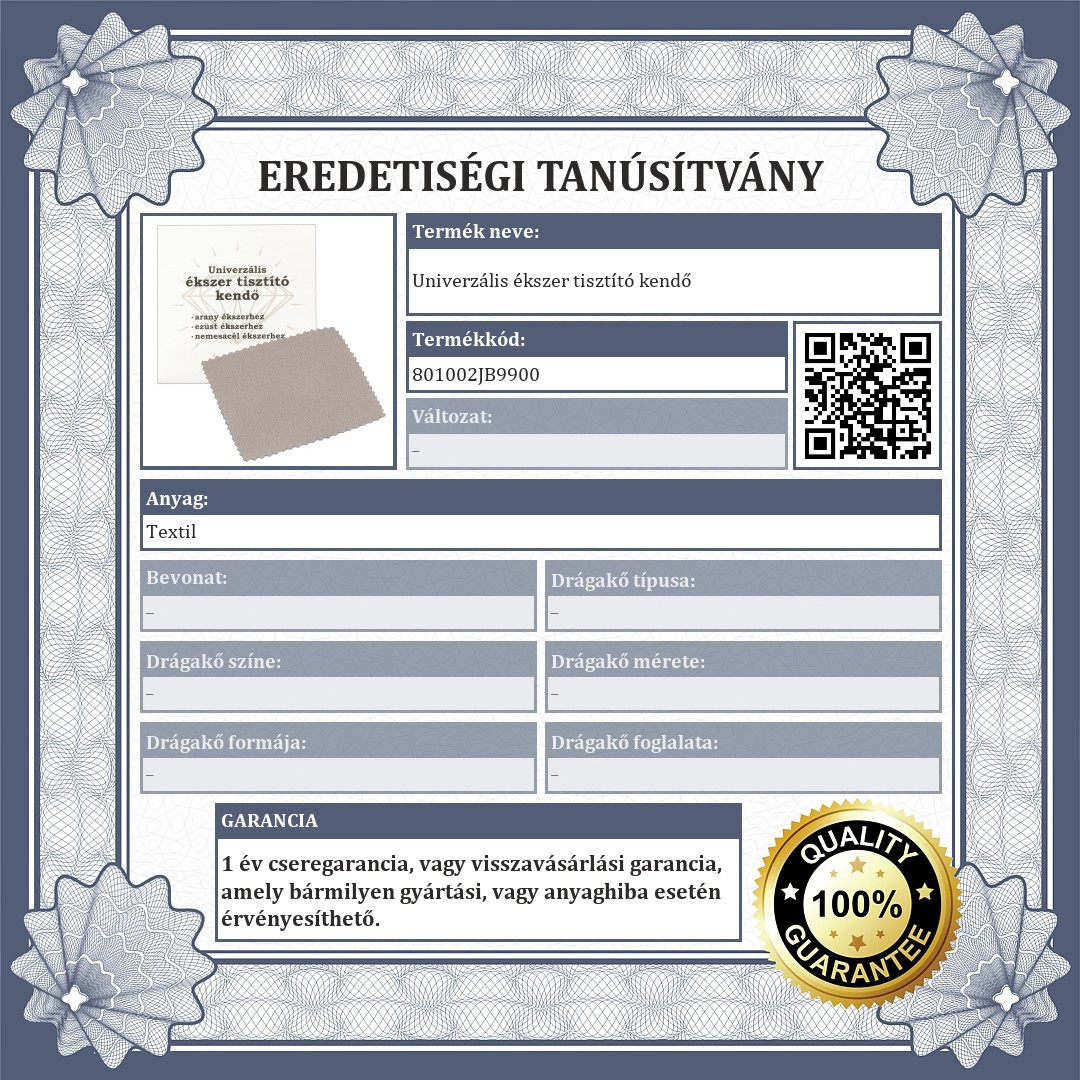 Speciális ékszertisztító kendő arany, ezüst és nemesacél ékszerhez.