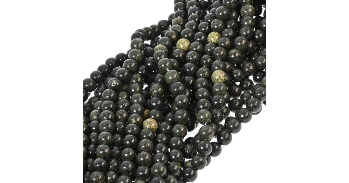 Zöld zebrakő jáspis - ásványgyöngy ideiglenesen felfűzve