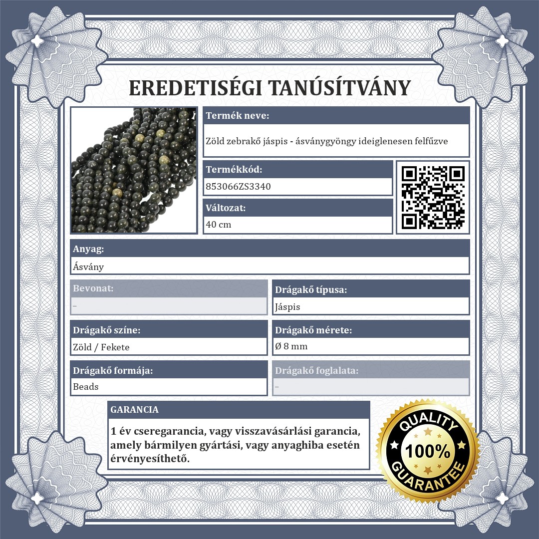 Eredeti zöld zebrakő jáspis ásványgyöngy karkötő.