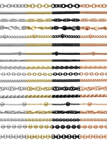 Garantáltan a legjobb minőségű allergiamentes 316L orvosi nemesacélból magasfényű polírozással 18K arany; 18K rozé arany vagy fekete króm PVD bevonattal.
